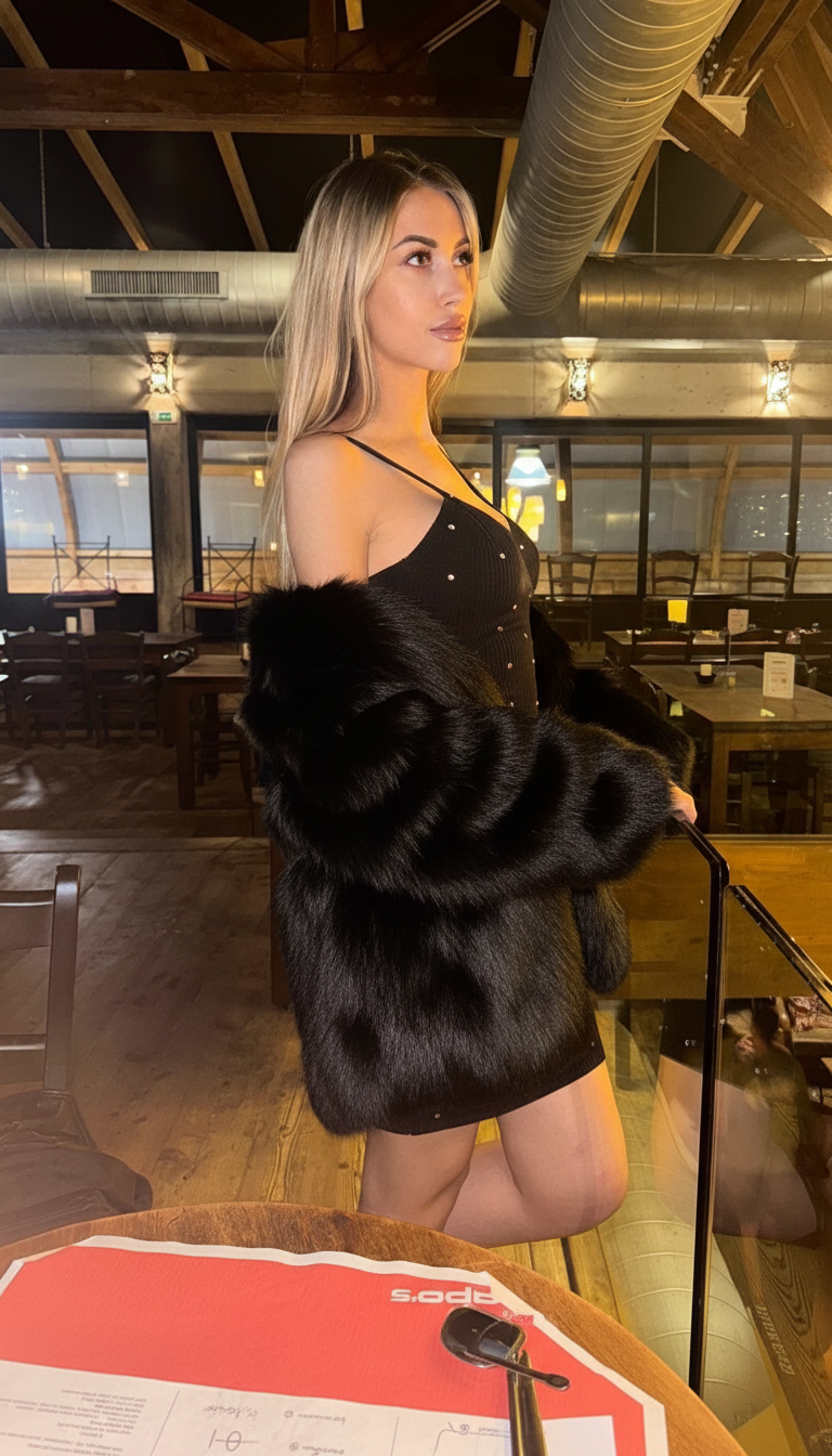 Questo elegante cappotto in pelliccia di volpe nera rappresenta un capolavoro senza tempo di lusso e raffinatezza. Perfetto per elevare qualsiasi look, dal giorno alla sera, questo capo iconico combina stile sofisticato con comfort supremo. La sua costruzione impeccabile e la texture pregiata garantiscono calore avvolgente durante i mesi invernali, mentre il design classico assicura versatilità senza compromessi. Un investimento nella qualità che vi permetterà di sfoggiare eleganza consapevole in ogni occasione, trasformando il vostro guardaroba invernale con un tocco di lusso autentico.